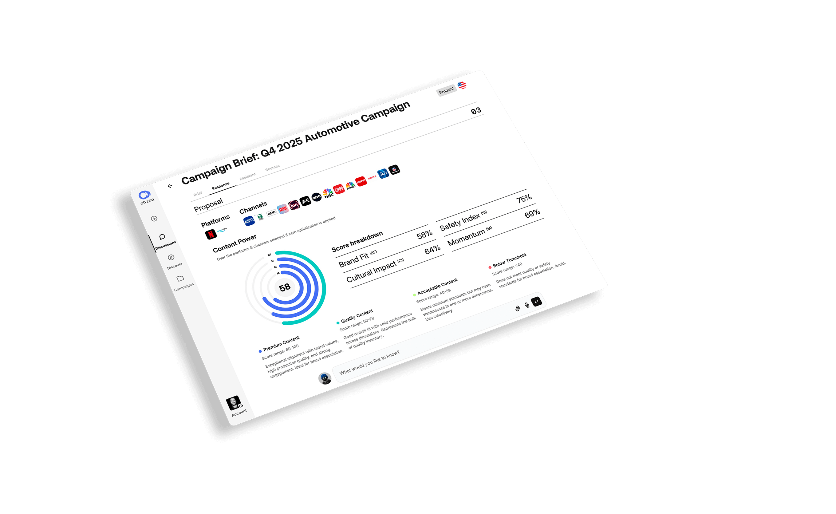 Olyzon's Agentic OS © turns complex TV signals into decisions that maximize reach, resonance, and measurable outcomes.